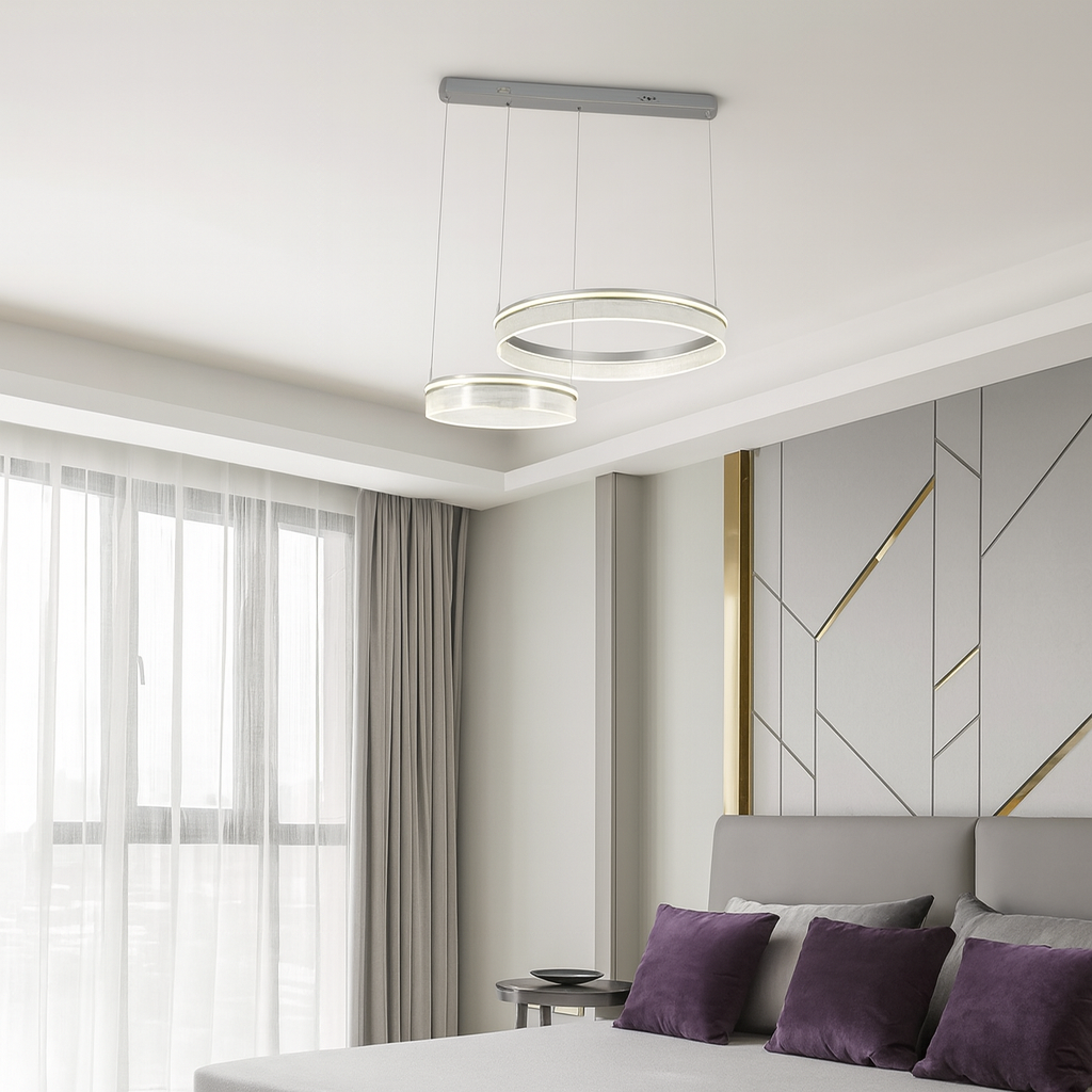 Lustra LED 2 Cercuri Ctistal 80W D35cm cu Telecomanda wifi 2.4G cu lumina/rece/calda/neutra intensitate reglabila