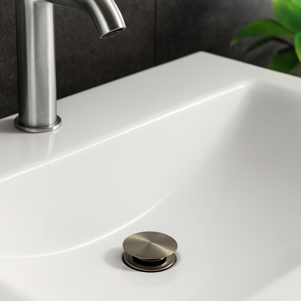 Sink or bidet stopper with metal sleeve - universal, Deante The universal click-clack plug from...