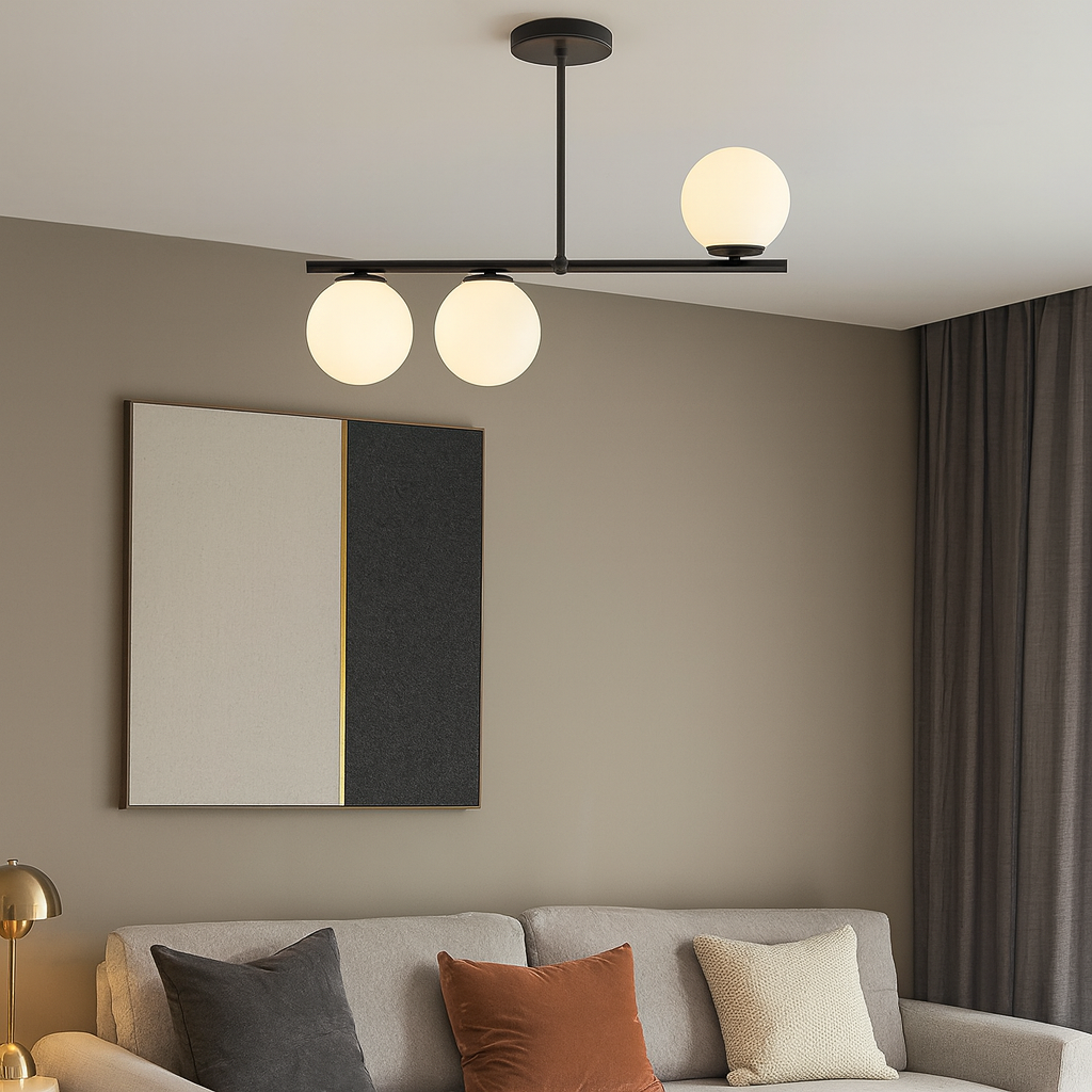 Modern chandelier with white globe E27x3 Length 67cm