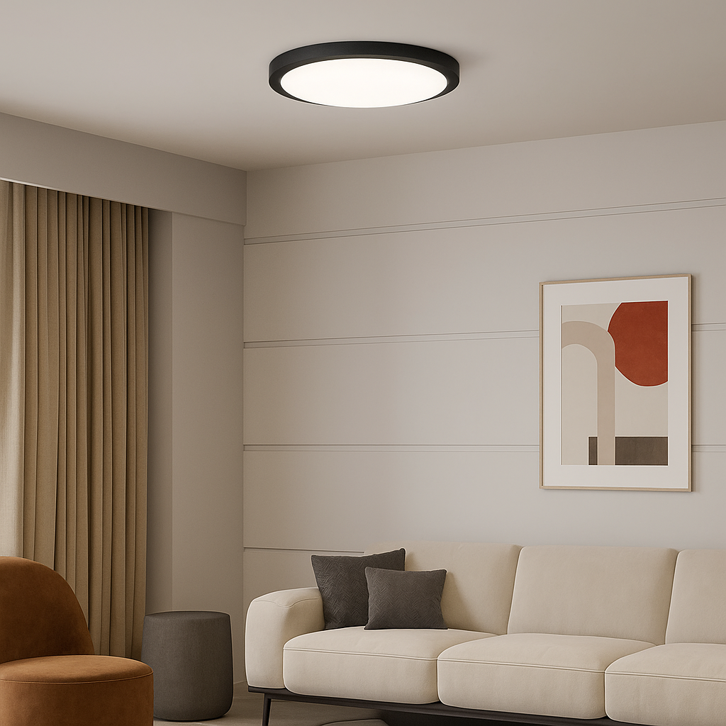 The lighting is uniform and over an extended surface, and the plastic housing ensures the extended lifespan of the ceiling light.