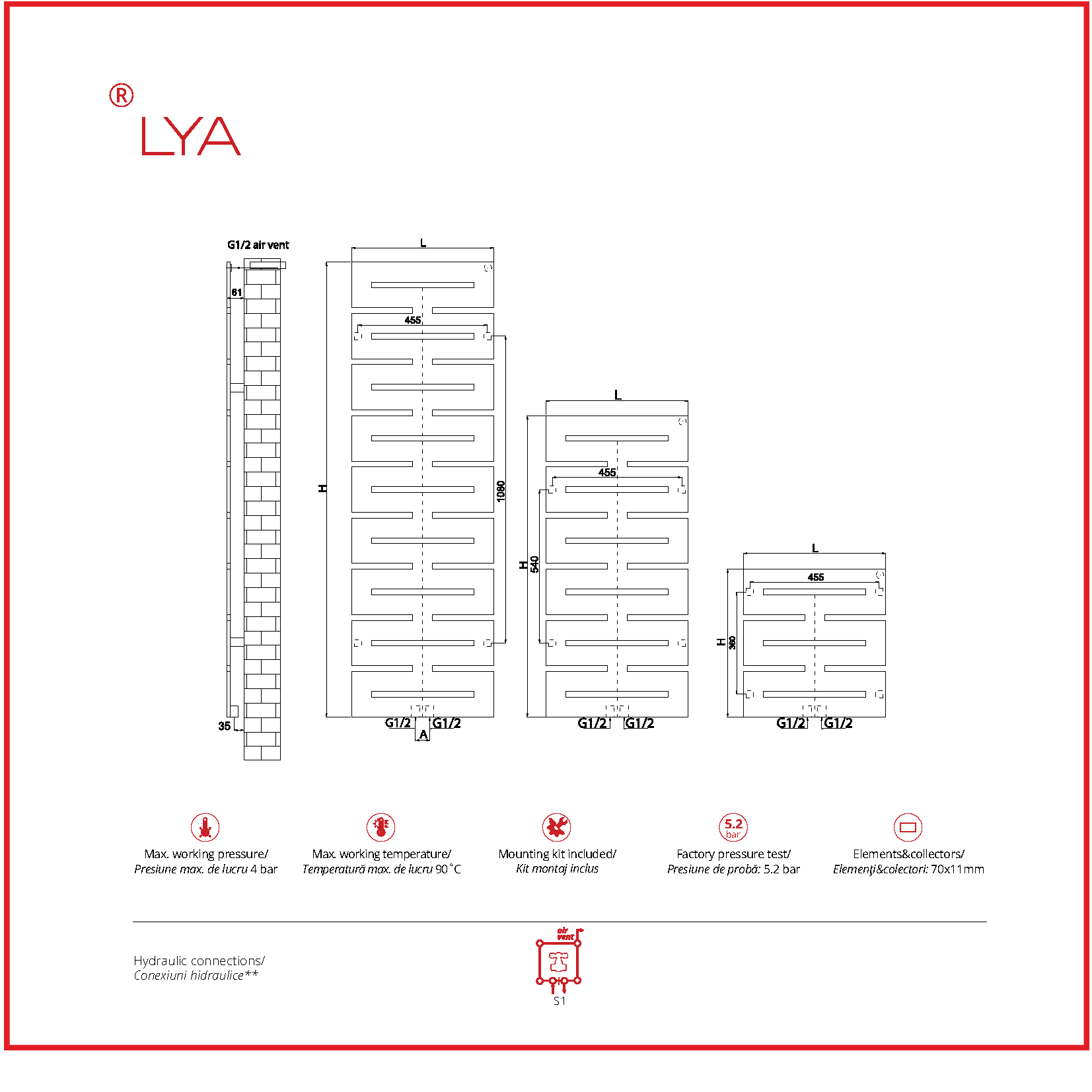 LYA este un radiator decorativ, modern, conceput pentru a încălzi și a adăuga stil oricărei încăperi. Succesiunea elemenţilor dreptunghiulari îi conferă o notă artistică, în timp ce culoarea va completa cu succes interiorul camerei.