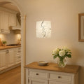 Plafoniera Elina 300x300 este un corp de iluminat modern si elegant, creat pentru a oferi lumina eficienta si un design decorativ in interiorul locuintei. Structura metalica este completata de abajurul din sticla opal alba cu model negru, care difuzeaza lumina uniform si contribuie la crearea unei atmosfere placute si confortabile in incapere.