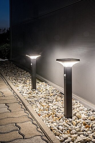 Lampa solara de podea de exterior Geleen, in stil modern, cu senzor de miscare, cu patru moduri de functionare selectabile, este o alegere excelenta pentru terasa sau in gradina. Modelul din otel inoxidabil de culoare neagra este completat de un abajur din plastic alb. Geleen este completata de o baza ornamentala mica, unghiularasi de un cap de lampa in forma de palnie care se largeste inspre sus. Lampa are o sursa de lumina LED incorporata cu o putere de 4 W, o luminozitate de 400 de lumeni cu abajur, 600 de lumeni fara abajursi cu o durata de viata de 10.000 ore. Sursa de lumina emite o lumina alba naturala cu o temperatura de culoare de 3000 K. Latimea lampii solare este de 145 mm, inaltime 500 mm, diametru de instalare 80 mm. Szenzorul de miscare detecteaza miscarea de la o distanta de 6-8 metri, intr-un unghi de vizualizare de 110°. Bateria are o tensiune de 3,7 Vsi o capacitate de 2200 mAh. Timpul de incarcare este de 3-4 ore, iar timpul de functionare de 10-12 ore. Protectia IP44 a lampii garanteaza ca acest model este protejat impotriva patrunderii obiectelor solide mai mari de 1 mm, precumsi impotriva stropirii cu apa din orice directie. Intervalul ideal de temperatura de functionare: -10 °C pana la 40 °C.