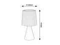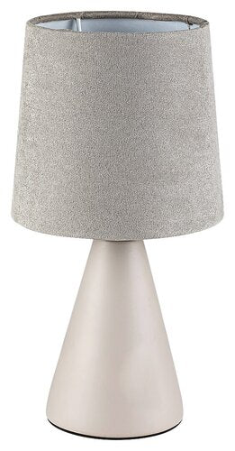 Lampa de veghe mica Nalani, al carei aspect radiaza caldura, poate fi amplasata pe noptiera in dormitor sau pe o masuta joasa in sufragerie. Corpul bej din ceramica este completat de un abajur textil de catifea de aceeasi culoare. Abajurul gros asigura ca va fi emisa numai suficienta lumina cat este necesar, cand aveti nevoie de un pic de lumina, daca va treziti in miez de noapte. Nalani poate fi folosita cu un singur bec de pana la 40W. Tipul soclului este E14. Pentru aceasta lampa puteti alege un bec care lumineaza alb cald sau natural. Aceasta lumina de veghe poate fi actionata cu un comutator pe cablu; culoarea cablului este alba. Înaltimea lampii Nalani este de 250mm iar diametrul abajurului este de 130mm. Acest model se livreaza fara o sursa luminoasa.