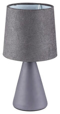 Lampa de veghe mica Nalani, al carei aspect radiaza caldura, poate fi amplasata pe noptiera in dormitor sau pe o masuta joasa in sufragerie. Corpul gri din ceramica este completat de un abajur textil de catifea de aceeasi culoare. Abajurul gros asigura ca va fi emisa numai suficienta lumina cat este necesar, cand aveti nevoie de un pic de lumina, daca va treziti in miez de noapte. Nalani poate fi folosita cu un singur bec de pana la 40W. Tipul soclului este E14. Pentru aceasta lampa puteti alege un bec care lumineaza alb cald sau natural. Aceasta lumina de veghe poate fi actionata cu un comutator pe cablu; culoarea cablului este negru. Înaltimea lampii Nalani este de 250mm iar diametrul abajurului este de 130mm. Acest model se livreaza fara o sursa luminoasa.