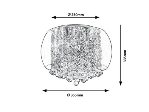 Dimensiunile plafonierei Ninelle sunt dupa cum urmeaza: diametru 400mm, distanta de la tavan 325mm, diametrul instalatiei de 250mm.