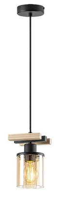 Pandantivul unic Niylah in stil modern poate fi un accesoriu confortabil pentru camera de zi. Lampa neagra din metalsi lemn este completata de un abajur cilindric de culoarea chihlimbarului, care adauga tonuri calde luminii emise din interiorul lampii. Niylah poate fi montat pe tavan cu ajutorul unei baze decorative rotunde micisi poate fi utilizat cu o sursa de lumina cu o putere de pana la 25 W. Tipul de soclu este E27. Acest model se potriveste cel mai bine cu o sursa de lumina alba calda, care ajuta in realizarea unei atmosfere familialesi intime in camera. Deoarece abajurul permite ca sursa de lumina sa fie vizibila, merita sa folositi aceasta lampa cu un bec estetic de o forma diferita de cea obisnuita. Dimensiunile pandantivului Niylah sunt urmatoarele: latime 120 mm, diametru 95 mm, suspendare 1200 mm, diametru de instalare 100 mm. Acest model se livreaza fara sursa de lumina.