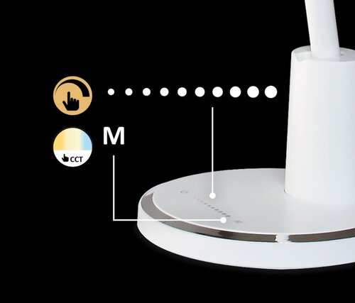 Aceasta caracteristica – casi luminozitatea lampii – poate fi controlata cu ajutorul comutatorului tactil situat pe baza decorativa a lampii.