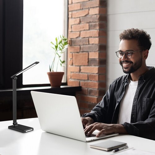 Rábalux Traze este o lampa de birou care poate satisface majoritatea necesitatilor legate de functionalitatesi design. Datorita aspectului modernsi versatilitatii uimitoare, acest produs este alegerea perfecta pentru orice birou sau camera de copii. Corpul lampii este fabricat din metalsi plastic in culoarea negru elegant, iar abajurul este fabricat din plastic de culoare alba. Lampa de masa LED inteligenta ofera o multitudine de functii suplimentare, care pot fi operate cu ajutorul comutatorului tactil. Dintre functiile suplimentare mentionam luminozitatea, temperatura de culoare, memoria, temporizareasi functia de noapte. Lampa de birou are de asemenea un port USB incorporat, prin care avem posibilitatea de a incarca telefonul mobil. În cazul unor anumite modele de telefoane, lampa permitesi incarcarea wireless. Datorita tehnologiei LED incorporate, aceasta lampa de birou este eficienta din punct de vedere energeticsi asigura o durata de viata lunga a produsului.