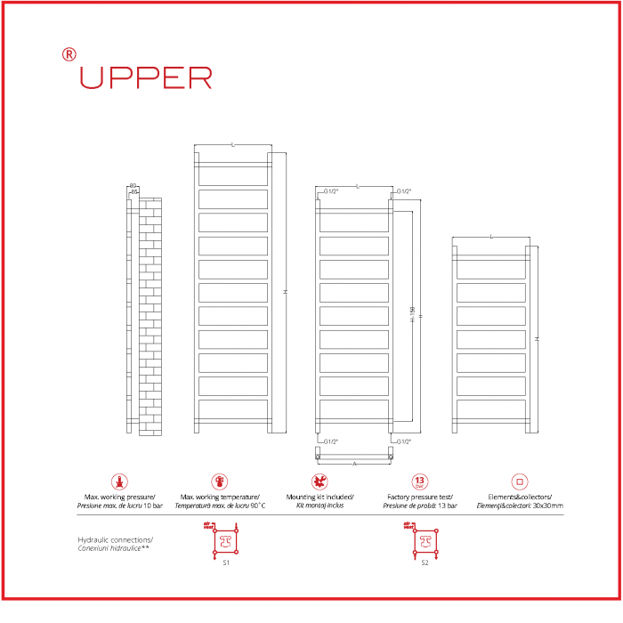 UPPER reprezintă eleganţă şi stil prin simplitatea formelor drepte. Designul minimalist cu elemenţi rectangulari şi subţiri oferă suficient spaţiu pentru depozitarea şi încălzirea prosoapelor. UPPER este disponibil în finisaj crom, oţel inoxidabil şi în culori RAL.
