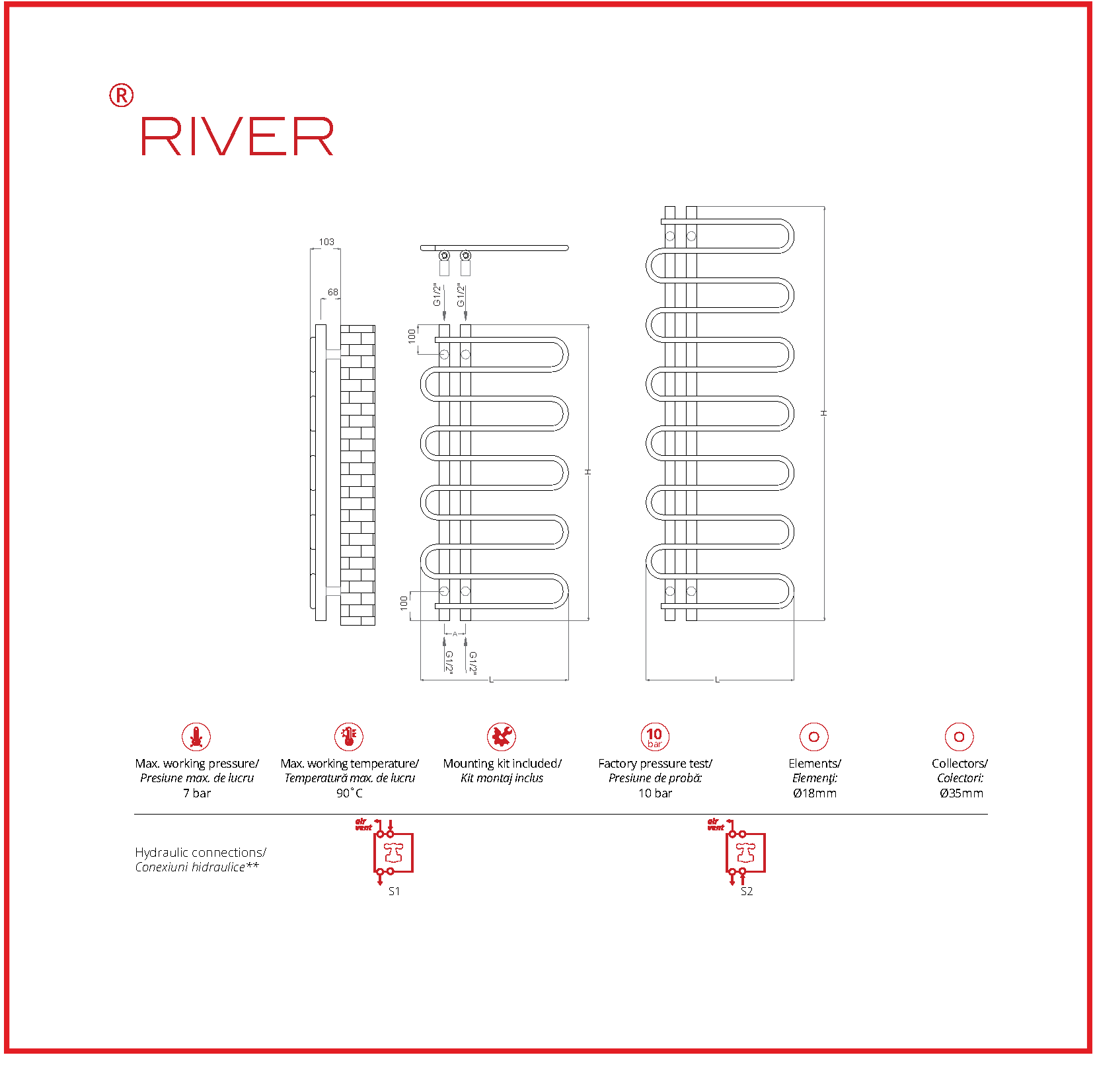 Un radiator port-prosop contemporan, RIVER completează orice baie sau bucătărie.