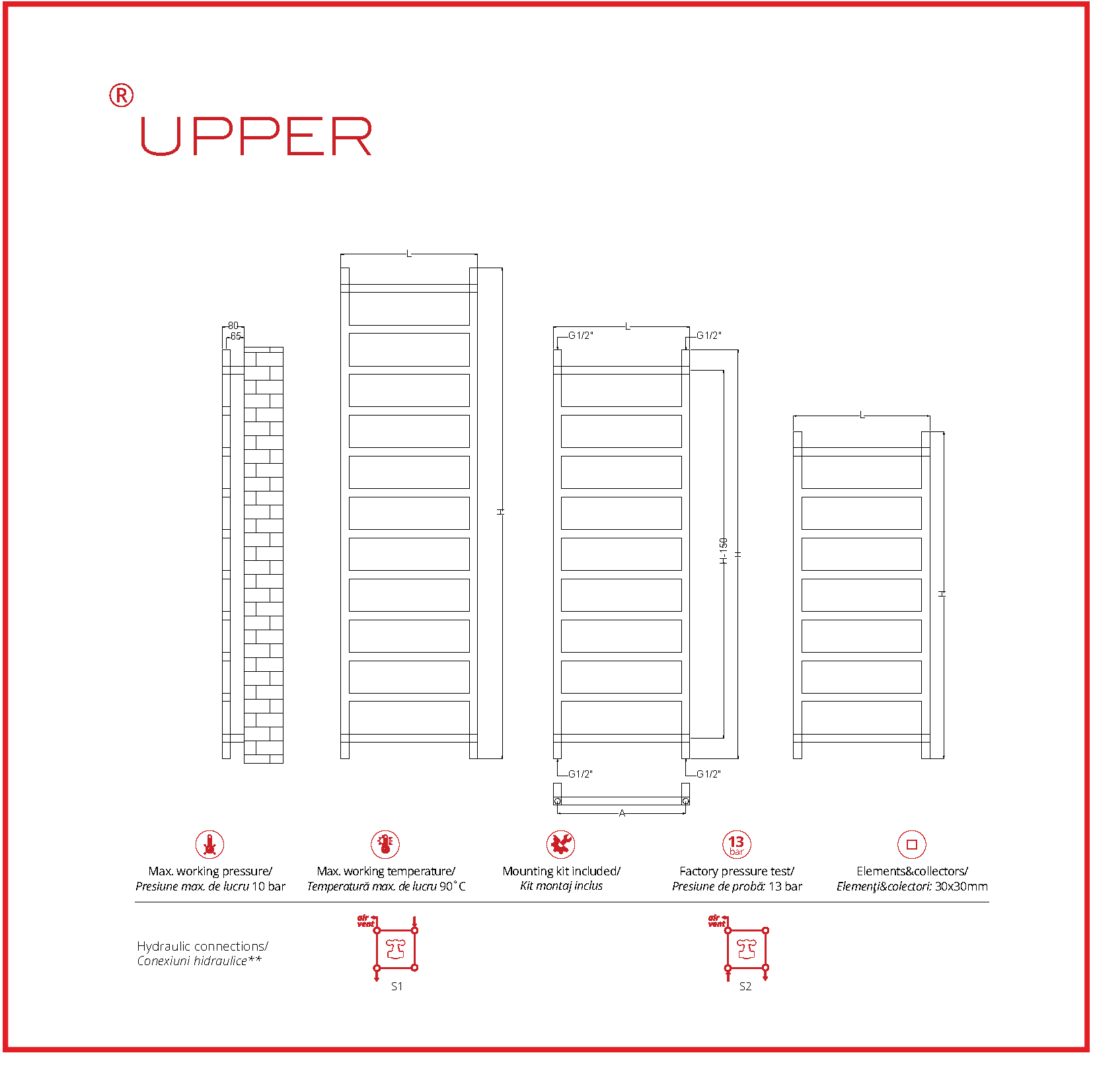 UPPER reprezintă eleganţă şi stil prin simplitatea formelor drepte. Designul minimalist cu elemenţi rectangulari şi subţiri oferă suficient spaţiu pentru depozitarea şi încălzirea prosoapelor.