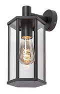 Lampa de perete de exterior Dubrovnik cu iluminare in jos reprezinta stilul clasic. Corpul lampii negru mat din aluminiu este completat de un abajur hexagonal din sticla transparentasi o baza decorativa mica, rotunda. Capul lampii care atarna in jos este conectat la elementul orizontal care se extinde din baza decorativa. Lampa de perete Dubrovnik este recomandata in primul rand pentru terasa, dar poate fi instalatasi in alta parte pe peretele exterior al casei. Lampa exterioara poate fi folosita cu o singura sursa de lumina cu o putere de pana la 40 W, tip soclu E27. Dimensiunile lampii Dubrovnik sunt urmatoarele: latime 155 mm, inaltime 310 mm, distanta fata de perete 180 mm, diametru de instalare 80 mm. Protectia IP44 a lampii de perete garanteaza ca aceasta este protejata impotriva patrunderii obiectelor cu diametrul de pana la 1 mm, precumsi impotriva stropirii cu apa din orice directie. Lampa de exterior Dubrovnik se livreaza fara sursa de lumina.