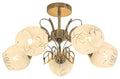 Plafoniera Fauna in stil clasic cu 5 becuri va fi o piesa de mobilier eleganta in livingul sau dormitorul Dvs. traditional. Abajururile albe de sticla cu model sunt prinse de un corp metalic auriu. Lampa se poate fixa pe tavan cu ajutorul unei baze decorative rotunde. Abajururile rounjite, deschise la baza, sunt atasate de bratele lampii, care se rasucesc ca niste lujerisi sunt decorate cu frunze aurii. Fauna poate fi folosita cu cinci becuri, fiecare de pana la 40W. Tipul soclului este E27. Daca doriti sa sporiti atmosfera intima, placuta, alegeti surse luminoase cu temperatura de culoare alb cald pentru aceasta lampa. Dimensiunile plafonierei Fauna cu 5 becuri sunt dupa cum urmeaza: diametru 560mm, distanta de la tavan 290mm, diametrul instalatiei de 120mm. Acest model se livreaza fara surse luminoase.