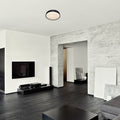 Plafoniera rotunda Larcia cu senzor de miscare este o piesa universala: cu aspectul sau discret, poate fi o alegere potrivita pentru camera de zi, dormitorul, bucataria sau baia oricarei locuinte moderne. Modelul in forma de disc, de culoare neagra cu abajur alb, este fabricat in intregime din plastic. Larcia are o sursa de lumina LED incorporata apartinand clasei energetice G, cu o putere de 19 W, o luminozitate de 1000 de lumeni cu abajur, 1900 de lumeni fara abajursi cu o durata de viata intr-adevar excelenta: 50 000 ore! Plafoniera cu lumina alba naturala are o temperatura de culoare de 4000 K. Senzorul detecteaza miscarea de la o distanta de 6 metri, intr-un unghi de vizualizare de 120°si modifica luminozitatea lampii in functie de conditii. Protectia IP44 a lampii Larcia garanteaza ca aceasta este protejata impotriva patrunderii particulelor solide cu diametrul mai mare de 1 mm, precumsi impotriva stropirii cu apa din orice directie. Diametrul plafonierei este de 285 mm, distanta fata de tavan fiind de 70 mm.