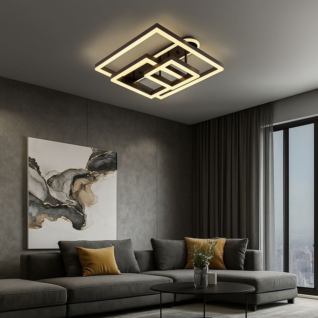 Lustra 5196 combina module circulare (aprox. 500 mm si 200 mm) pentru un look contemporan si iluminare echilibrata. Telecomanda inclusa permite reglarea intensitatii si selectarea modurilor de lumina, astfel incat sa obtii rapid ambianta potrivita spatiului.