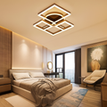 Lustra LED cu forme patrate si finisaj maro, diametru de 64 cm, ofera control prin WiFi si telecomanda 2.4G, cu trei functii de lumina (rece, calda, neutra) si intensitate reglabila. Designul modern metal+acril distribuie uniform lumina si se integreaza cu usurinta in interioare contemporane.